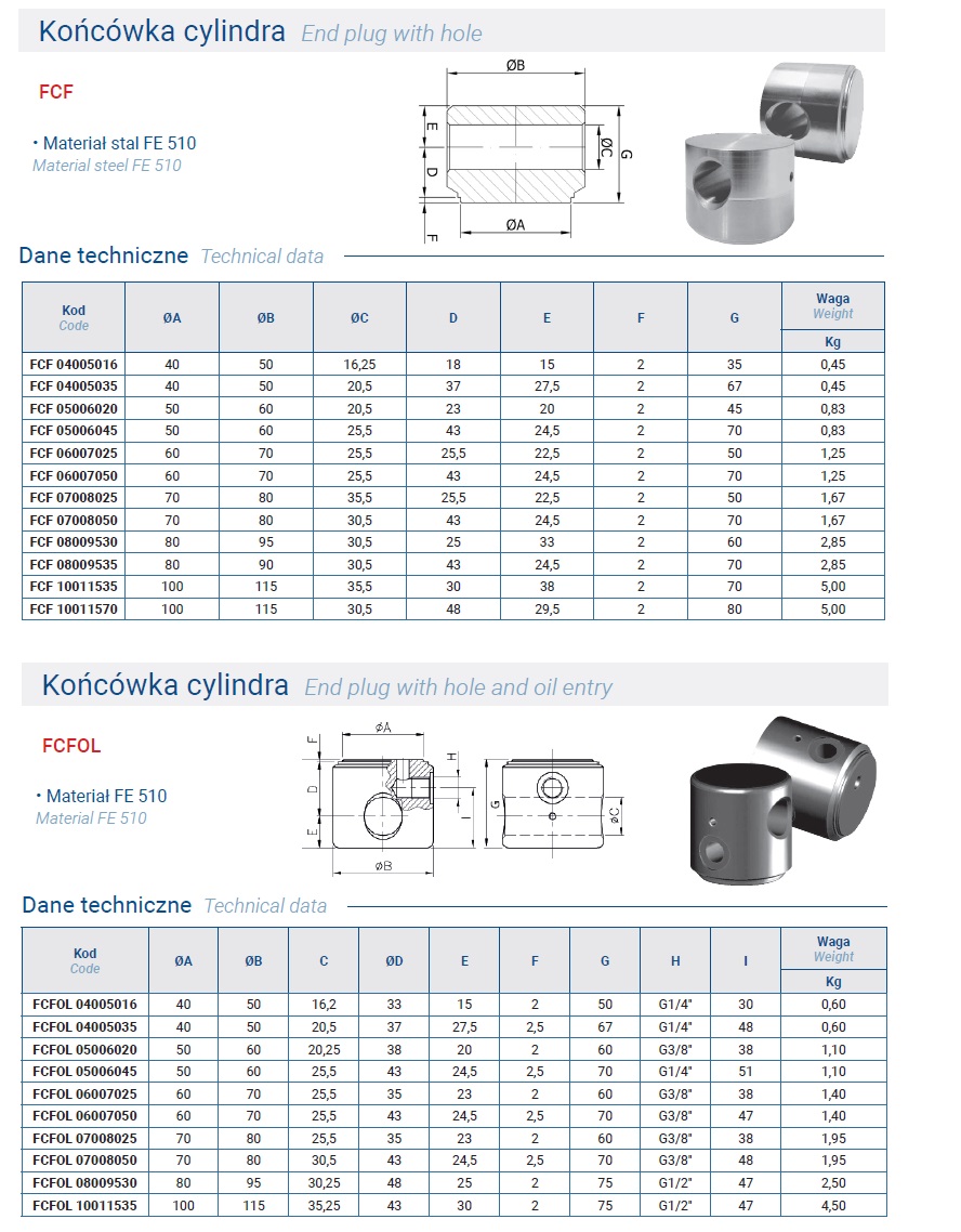 Wahliwa końcówka cylindra wykonana ze stali FE 510.